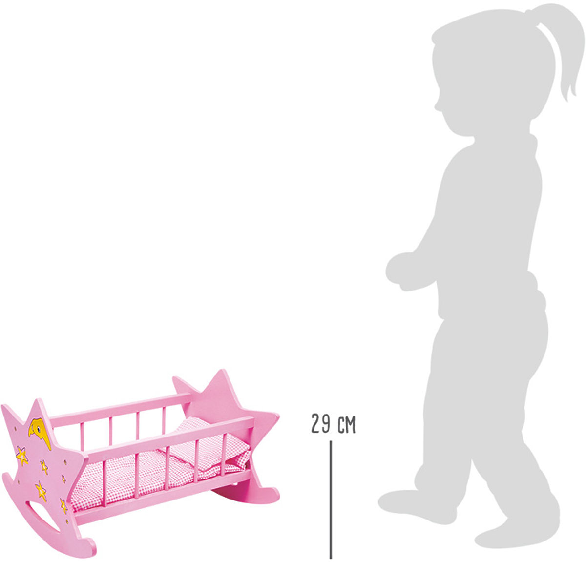 Attention all star gazers. With this great doll cradle made of sturdy wood, children rock their dolls into their dreams. The front and back of the cradle feature a starry sky design. Main features: encourages active play and trains social skills, stable construction, quality workmanship, suitable for kindergartens