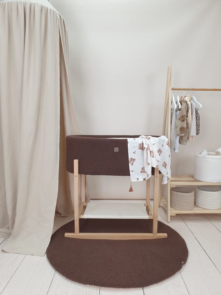 A stylish and practical Moses basket for babies in brown, combining comfort, safety, and modern design. An ideal choice for parents who want to provide their newborn with a cozy and safe sleeping space.