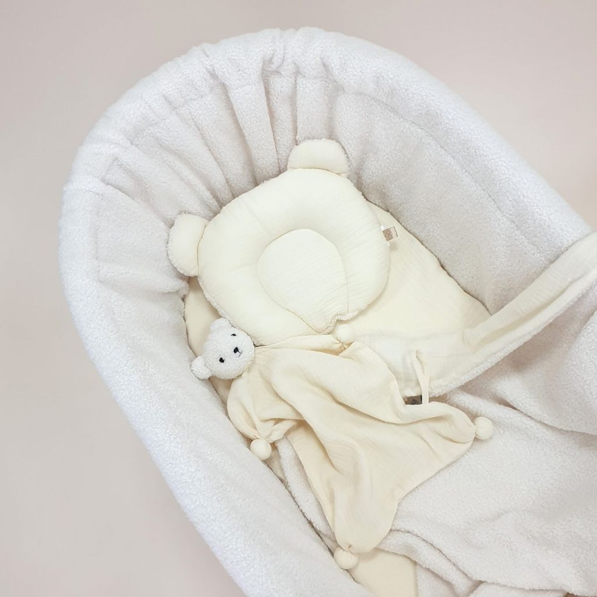 Banaby.ie » Children's furniture / Baby cots / Wicker baskets / Natural Wicker Teddy Baby Cradle - Ecru Color Set