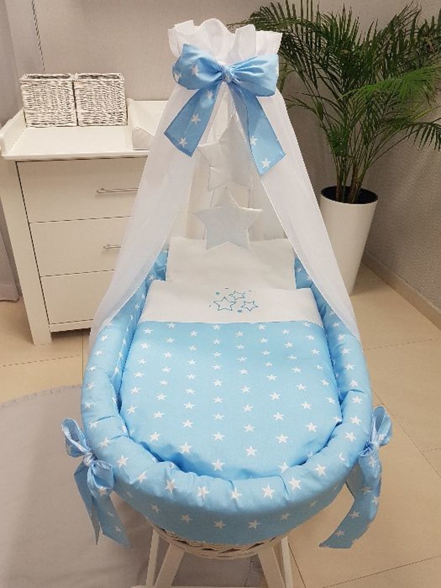 Banaby.ie » Children's furniture / Baby cots / Wicker baskets / Wicker cot with equipment for baby - blue stars