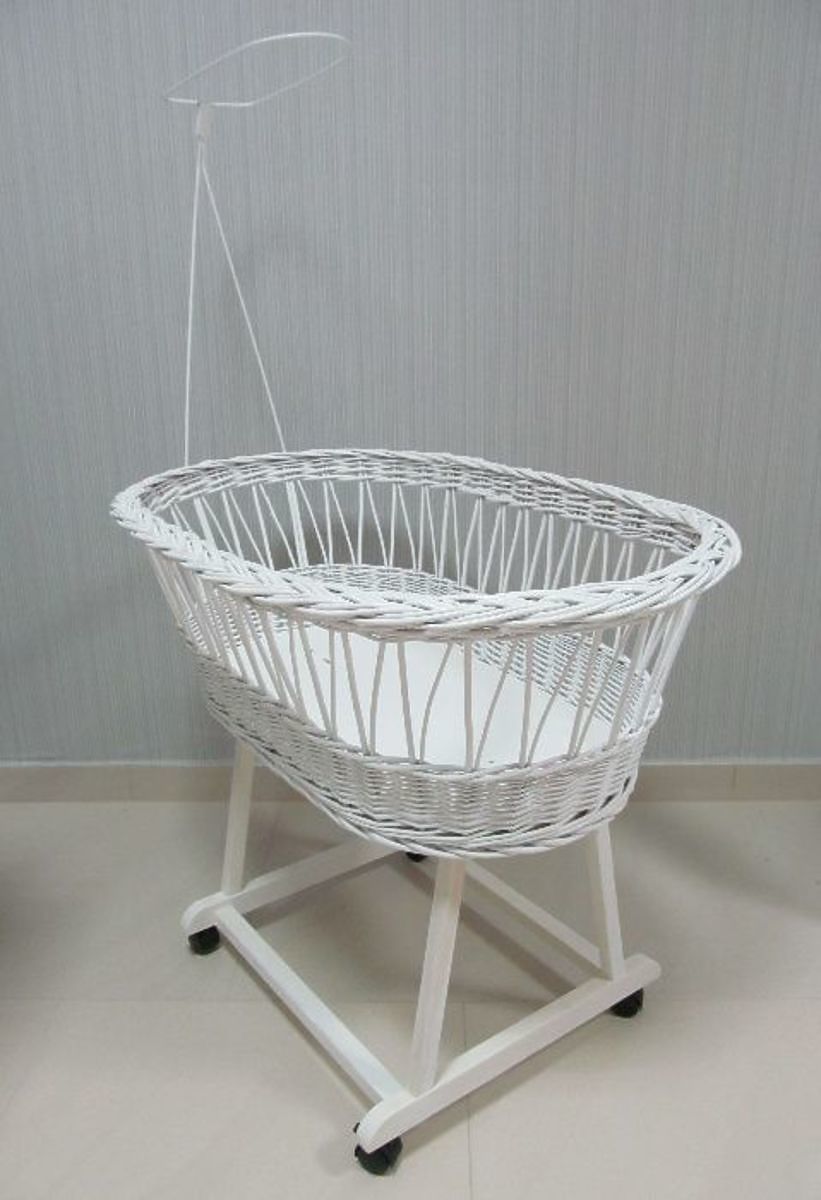 The wicker basket for the baby will become a practical and beautiful decoration of the children's room. The basket stands on a stable wooden structure fitted with castors with the possibility of braking. Extensive accessories are also included.