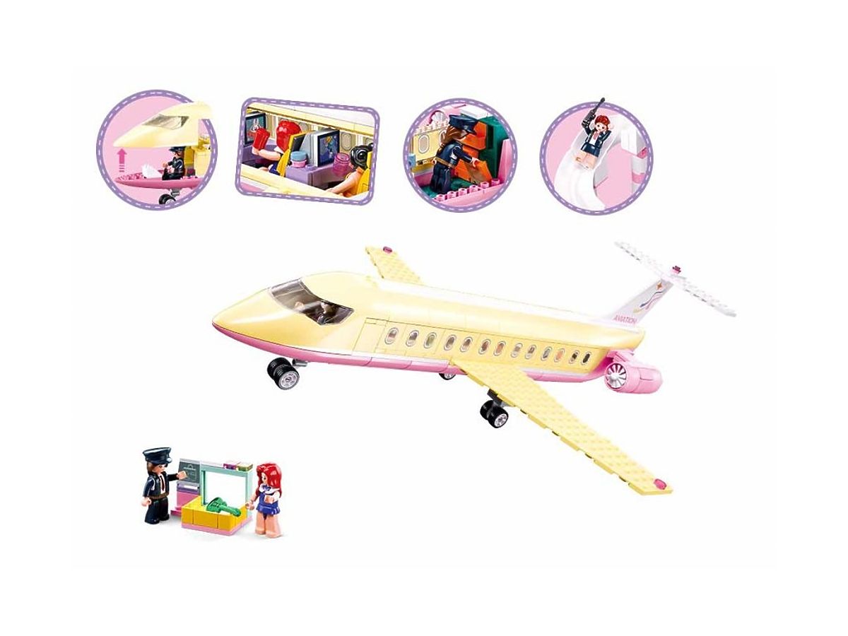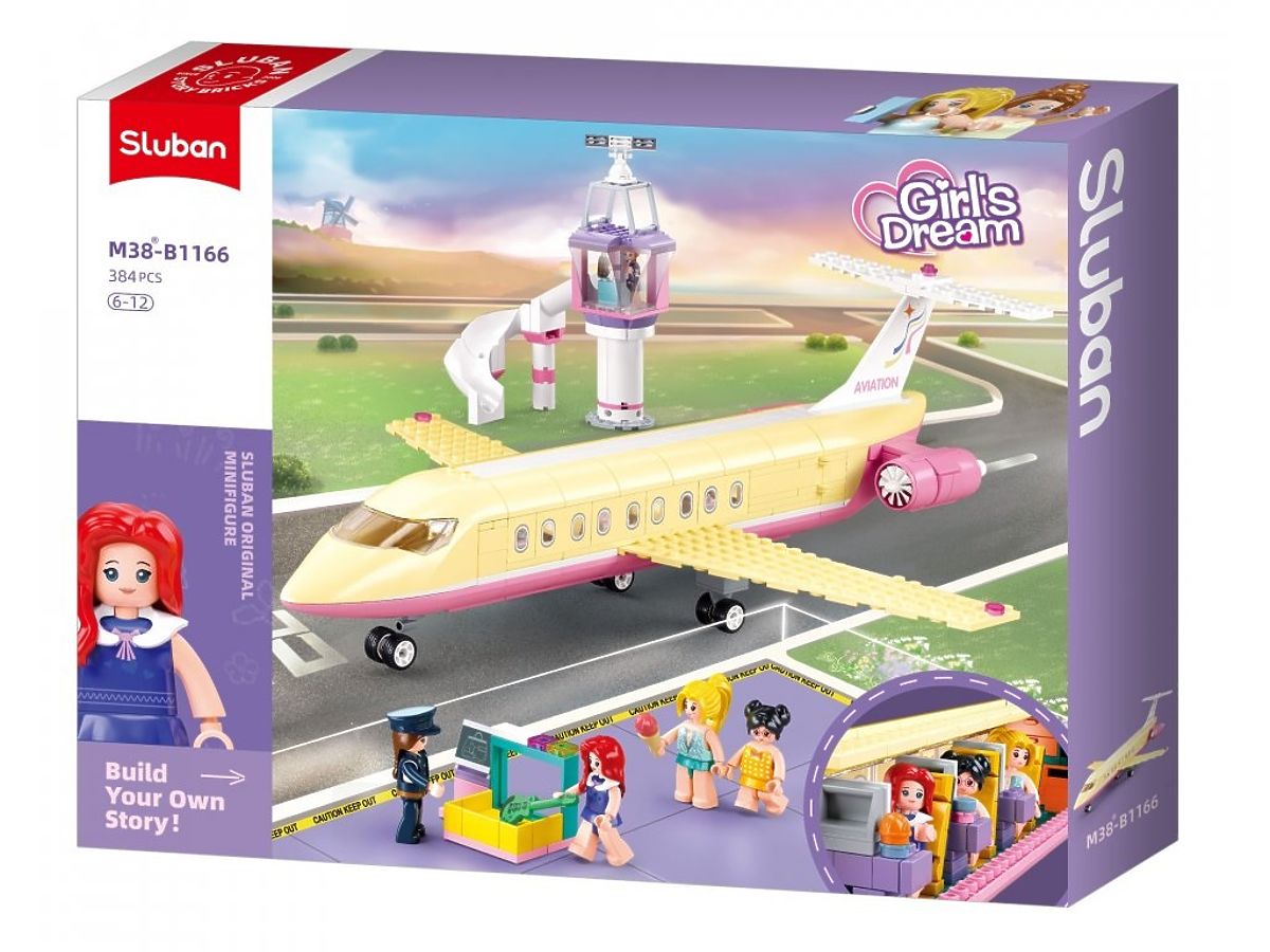 Introducing the Sluban Girls Dream Luxury Airplane – a building set that exceeds expectations and takes fun to a new level! With 384 pieces and five fascinating figures, it's not just a building set, but an entire new world of adventure waiting to be discovered. It is fully compatible with your favorite building brands like LEGO®, Cobi, and Mega Bloks. Each piece brings a new chapter of adventure for your children. The Sluban Girls Dream Luxury Airplane, with a removable cockpit roof and an opening passenger cabin side, makes every playtime an unforgettable experience. Each of the spacious seats is equipped with its own LCD screen and table, allowing your children to enjoy luxurious travel in their own room. With this building set, children can explore the world from the comfort of home, plan exotic trips, and experience the thrill of flying without any limitations. The Sluban Girls Dream Luxury Airplane not only provides hours of fun but also supports creativity, logical thinking, and fine motor skills. It is the perfect gift for little travelers and future pilots. Don't miss the opportunity to bring children's dreams and imagination to life. Create unforgettable memories with your children and watch their imagination take flight. The pieces are made from certified safe and durable ABS plastic. They fit together precisely and hold firmly. Warning: The product contains small parts and is not suitable for children under 3 years. The packaging material is not a toy. Main features: Girls Dream collection made from certified safe and durable ABS plastic includes 5 figures (pilot, flight attendant, three passengers), control tower, and security check-in desk compatibility with LEGO®, Cobi, and Mega Bloks develops fine motor skills, spatial orientation, and patience medium difficulty suitable for ages 6 and up