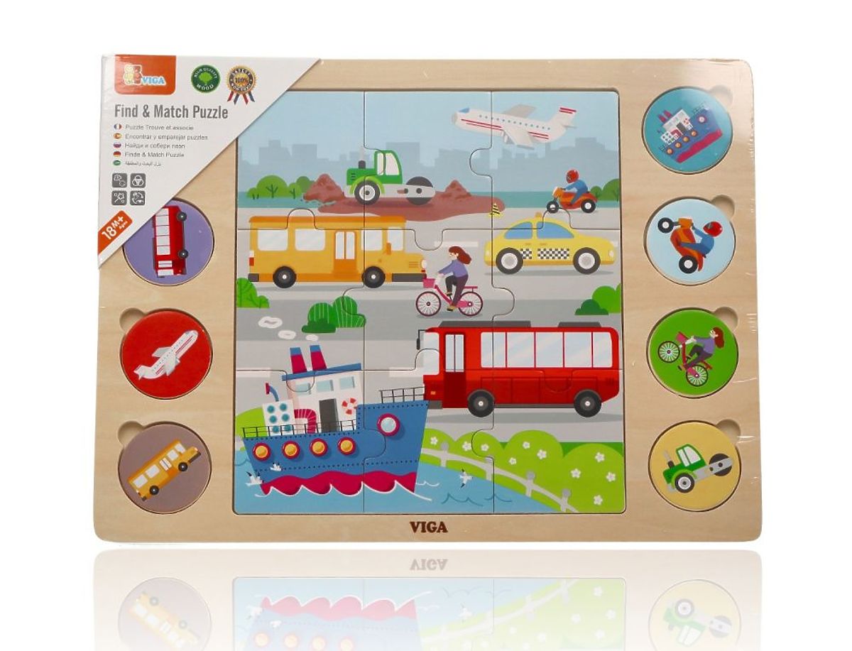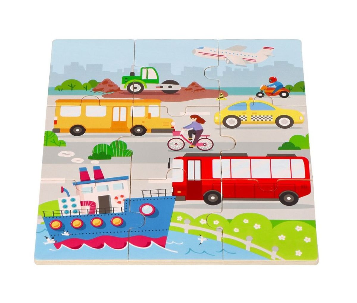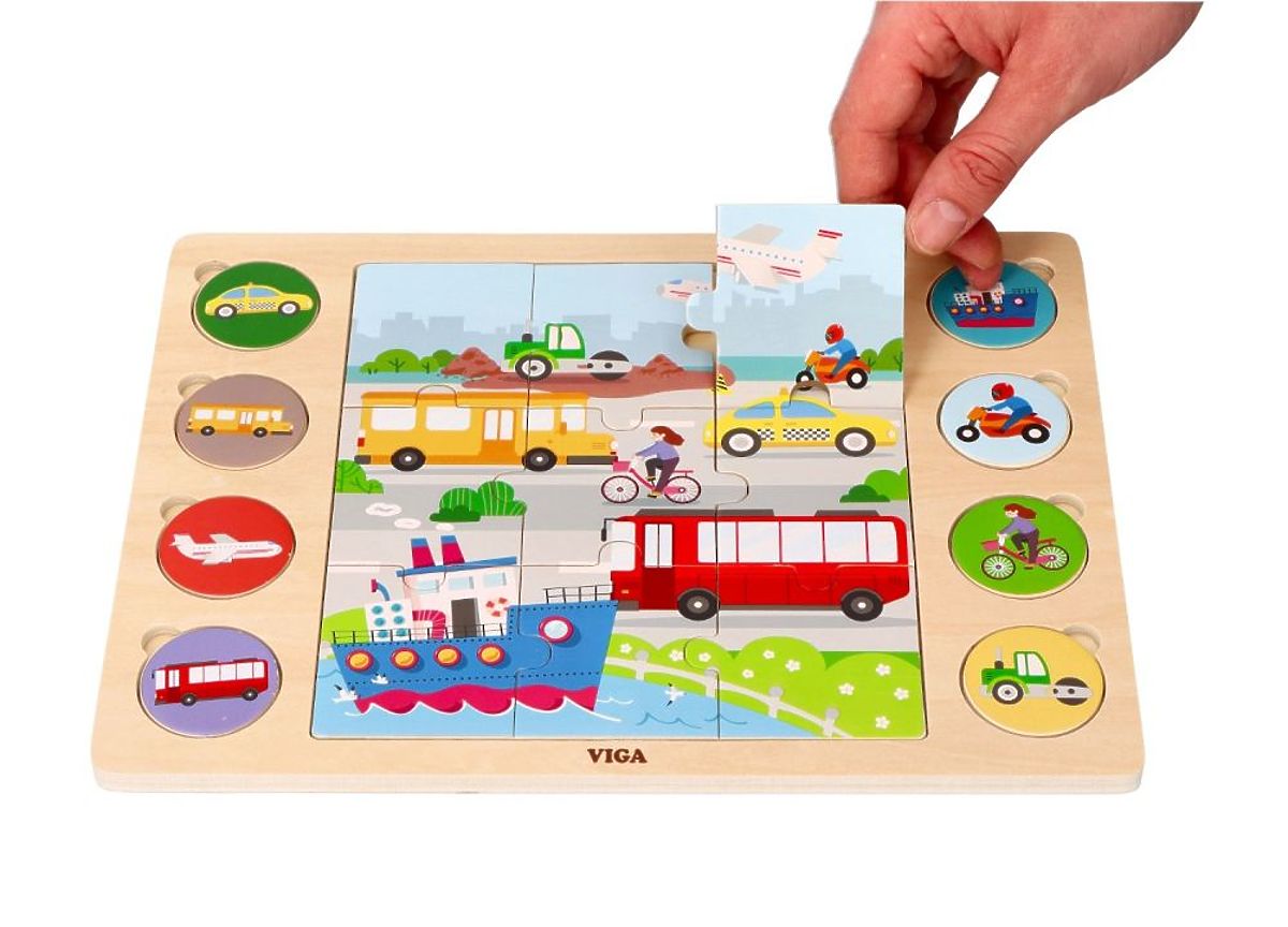 A very interesting 2-in-1 puzzle that introduces children to water and land transport vehicles. This exceptional set is not only great fun but also an educational tool that supports a child's development in a very thoughtful way.