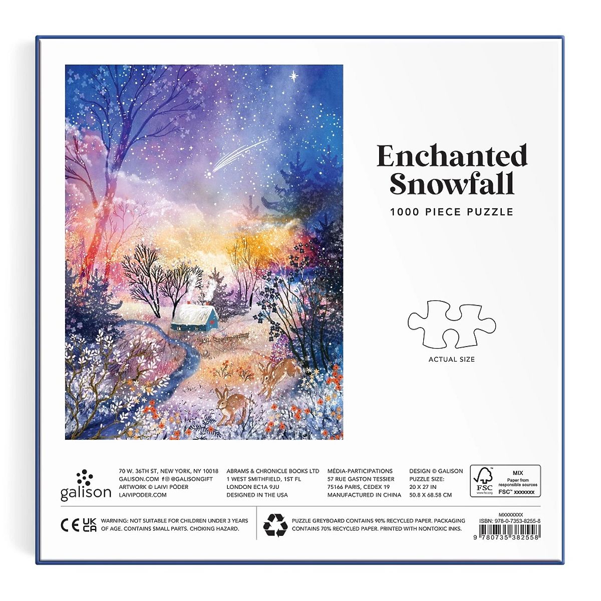The Magical Snowy Landscape 1000-piece puzzle by Galison depicts a snowy winter scene illuminated by a supernatural, starry sky. This puzzle showcases a .. more