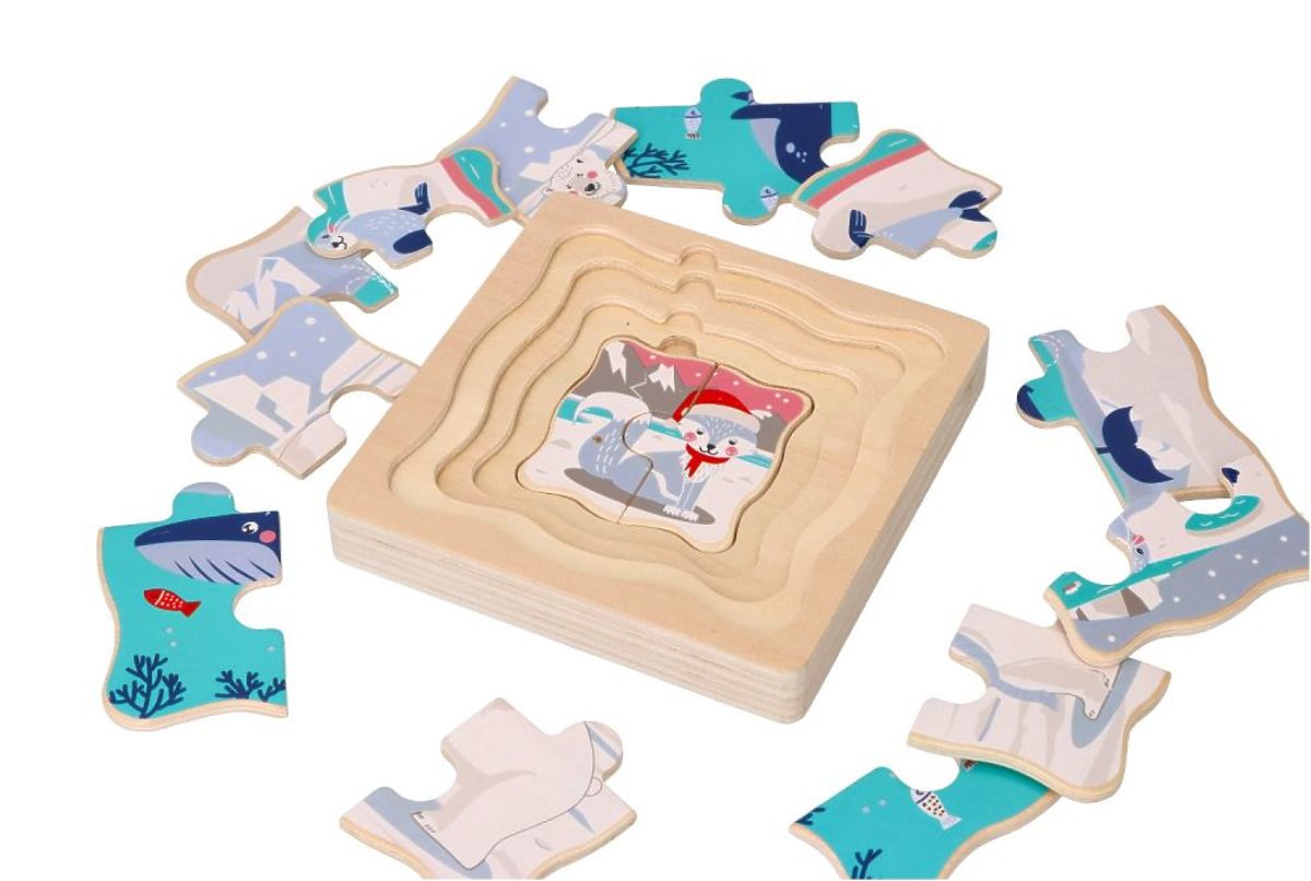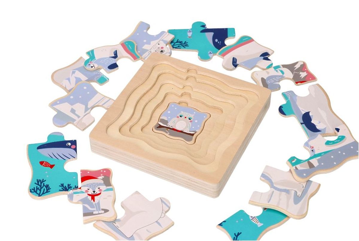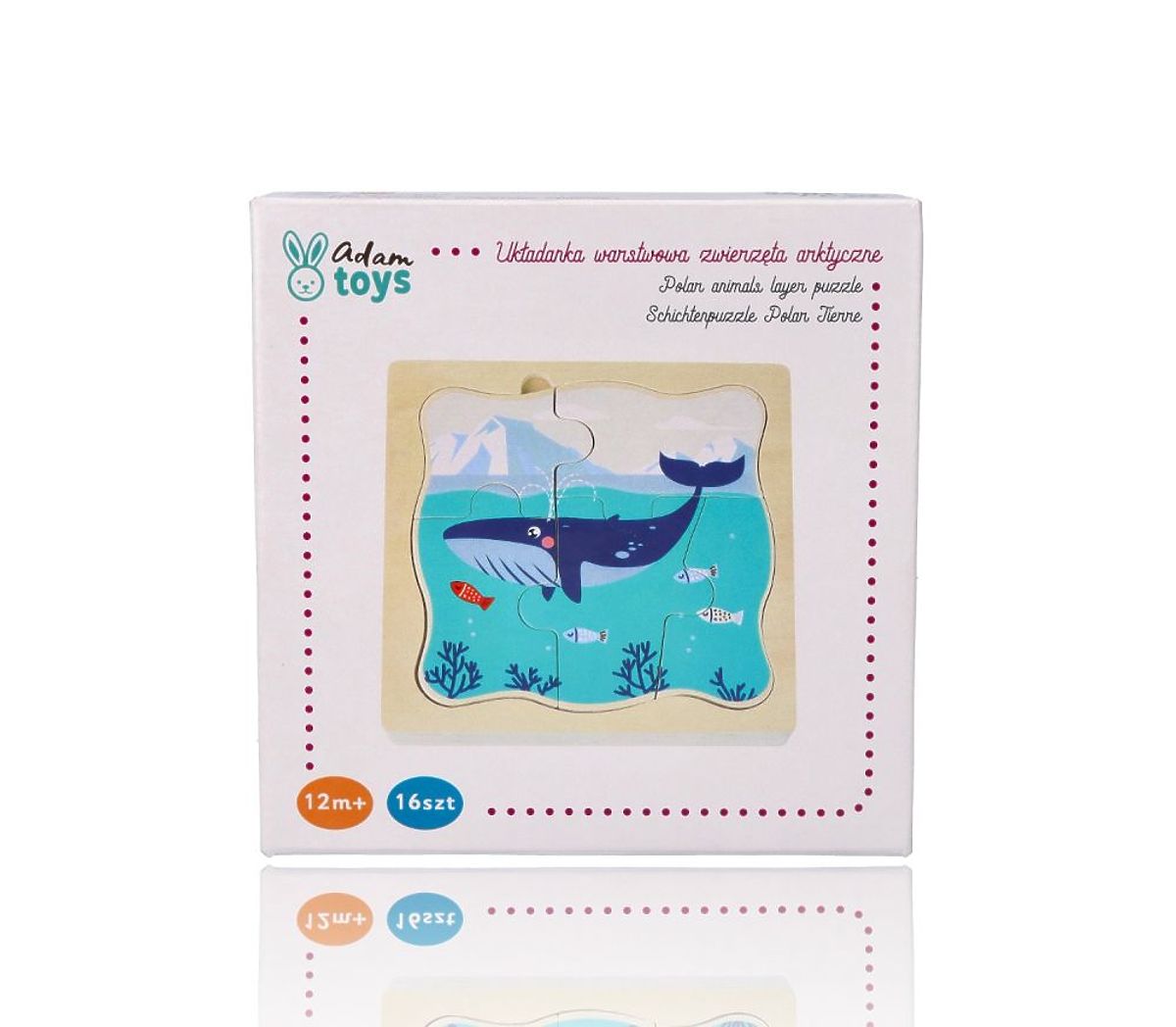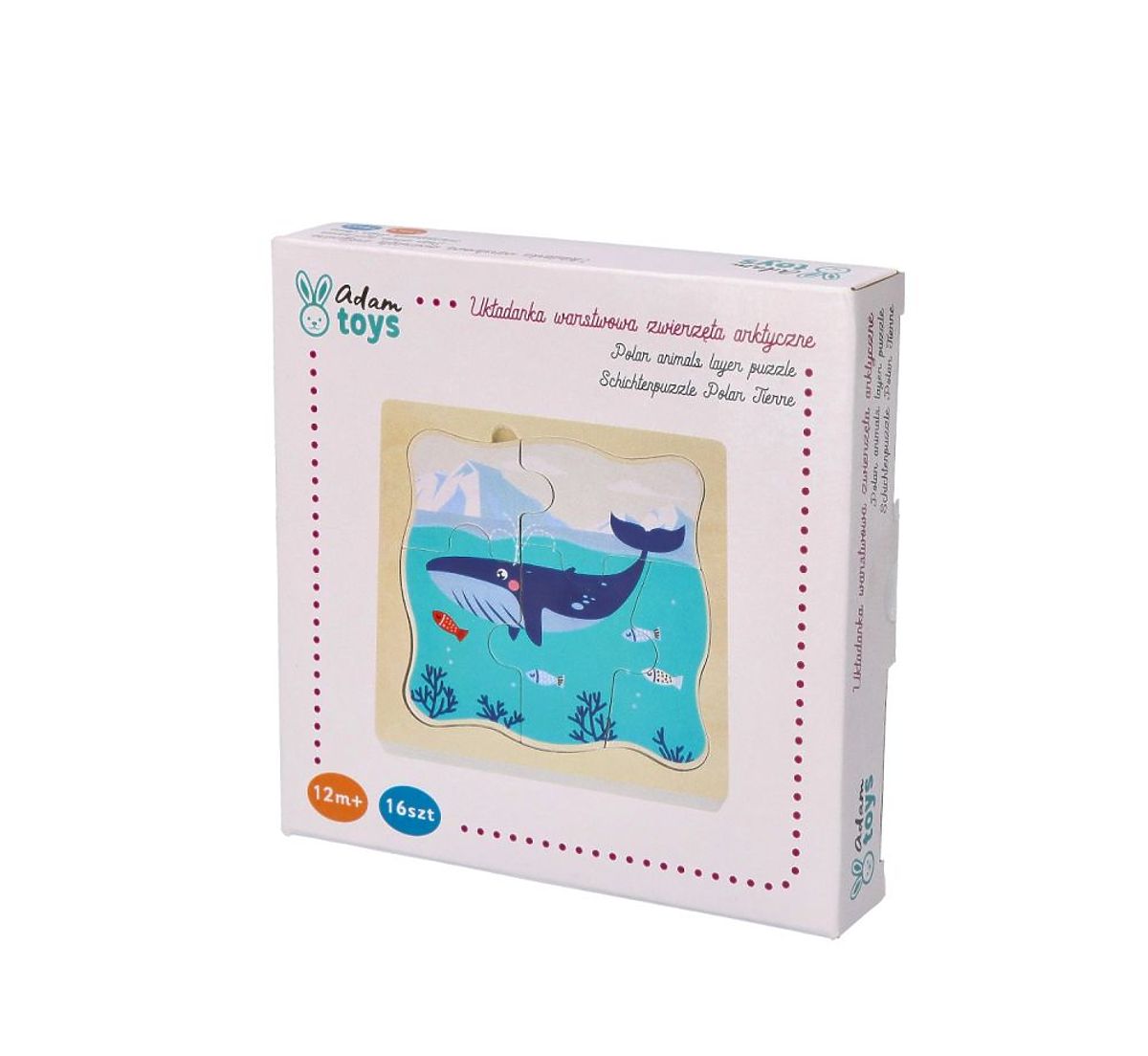 Another interesting offer from Adam Toys. This time we present a layered puzzle, of course, from the series of Arctic animals. It is another level of puzzle assembly initiation, as assembling them is more challenging, with more pieces, and they need to be assembled in 5 layers. But don't worry, if you have any trouble assembling, the back of the piece has a number indicating which layer the piece belongs to.