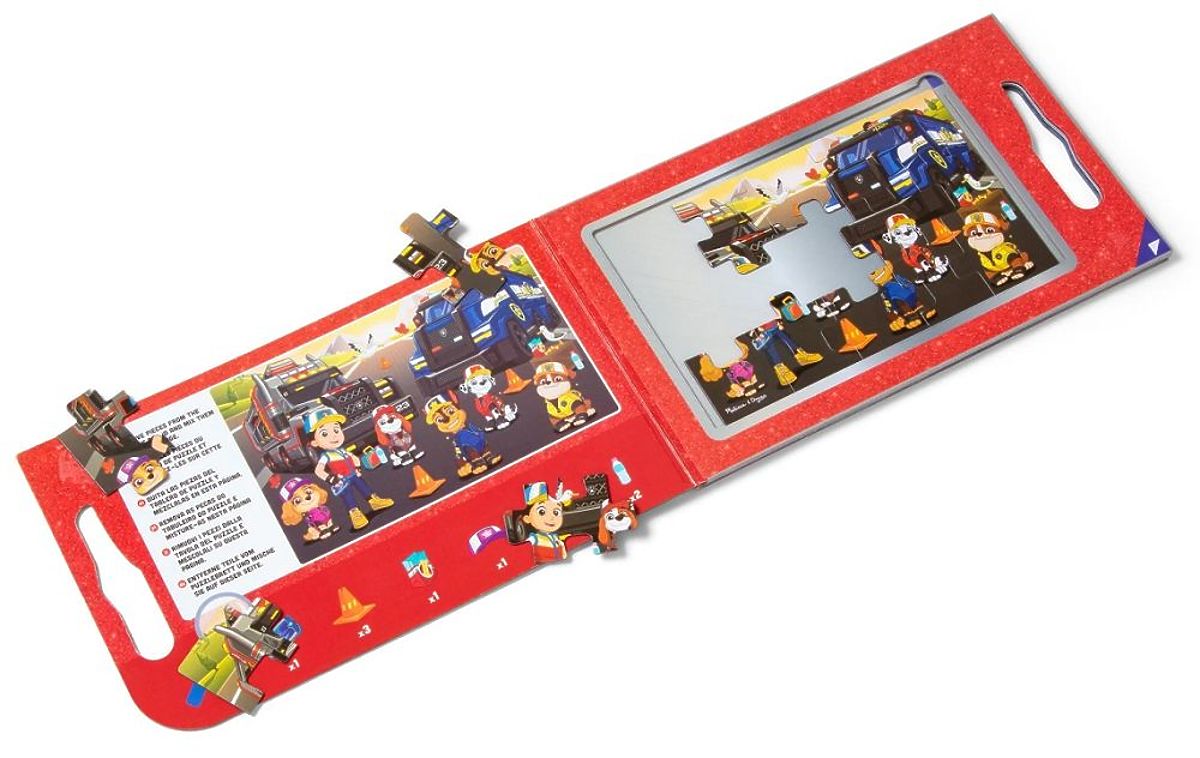 Do you have a little Paw Patrol fan at home? If so, we have something great for them: a beautiful puzzle from the well-known toy manufacturer Melissa and Doug. This is not an ordinary puzzle in a box, but a magnetic book that contains UP TO 2 images to assemble. On one side, there is a pattern of the image, and below it, you'll find a list of details to look for while assembling the puzzle. On the other side, of course, are the puzzle pieces with marked places for assembly.