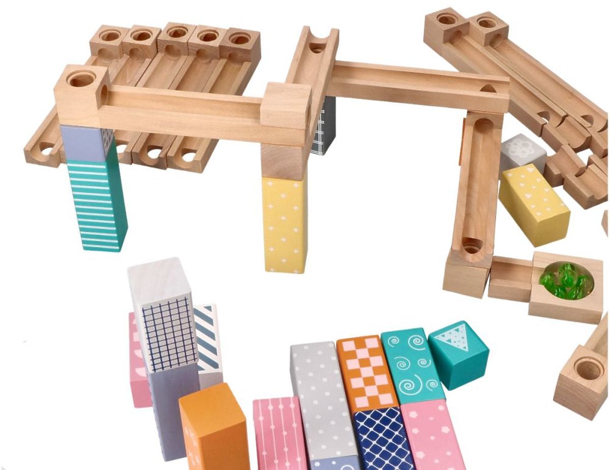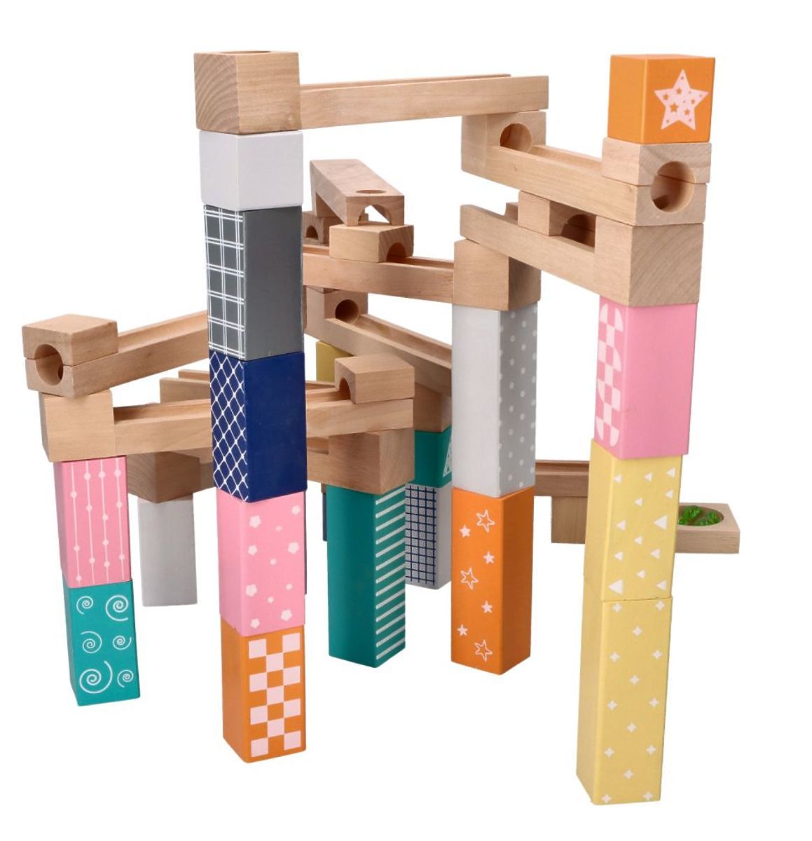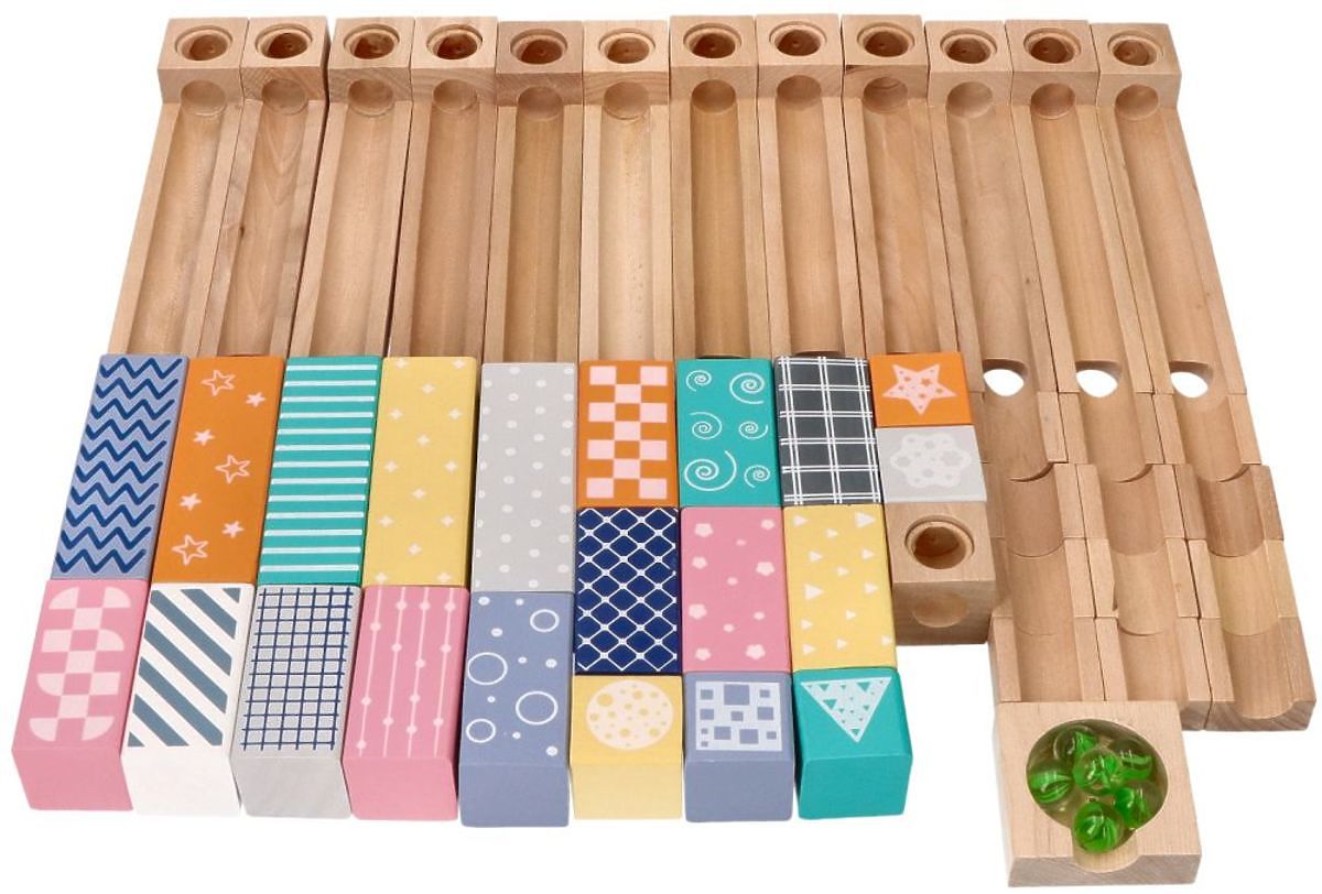 A fantastic toy for the whole family that allows you to spend time together building ever-new constructions. In this case, the elements are wooden and the marbles are glass, ensuring the toy's durability. Test your creativity by designing new tracks for the fast-moving marbles.