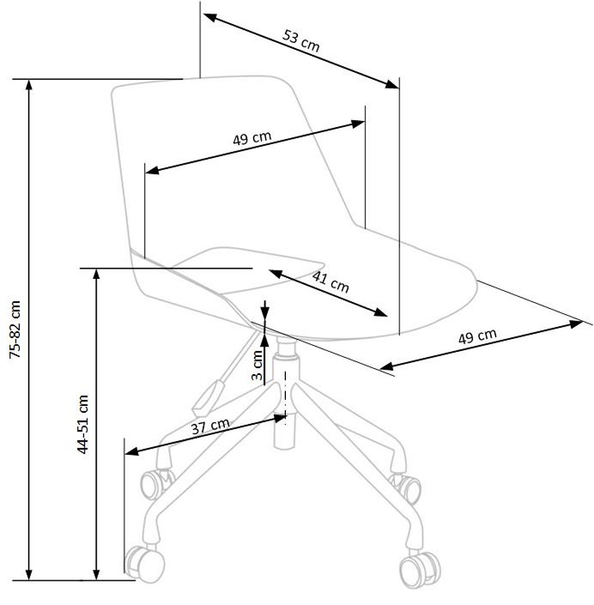 The chair is equipped with a basic mechanism that allows the height of the seat to be adjusted according to the user's needs, making it suitable for both children's rooms and offices.