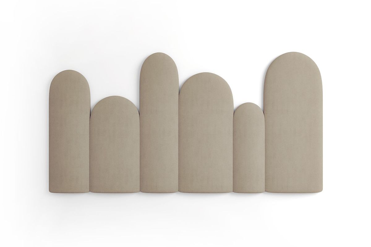 Set of Upholstered Panels is an original solution to enliven a child's room or bedroom. Includes 6 modules with a rounded top edge resembling a fence, which can be freely combined to create your own wall arrangement. The panels are made with an emphasis on quality, safety, and comfort. The grey design is universal and easily combines with other furniture and accessories.