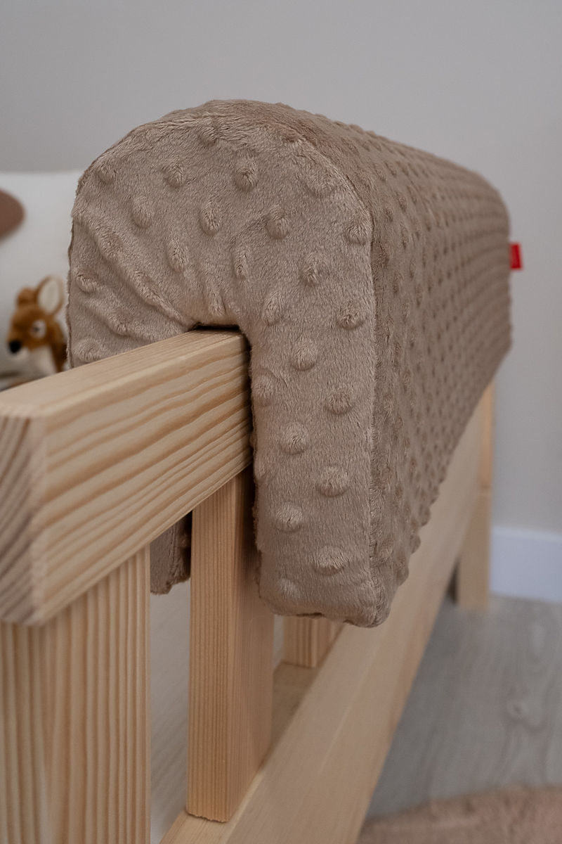 Soft, safe, and beautiful. That's the brown Ourbaby bed protector, a great addition to any child's room. The protector is made from high-quality polyurethane foam and the cover from soft and pleasant Minky fabric. It is available in three sizes, making it perfectly adaptable to beds of any dimension.