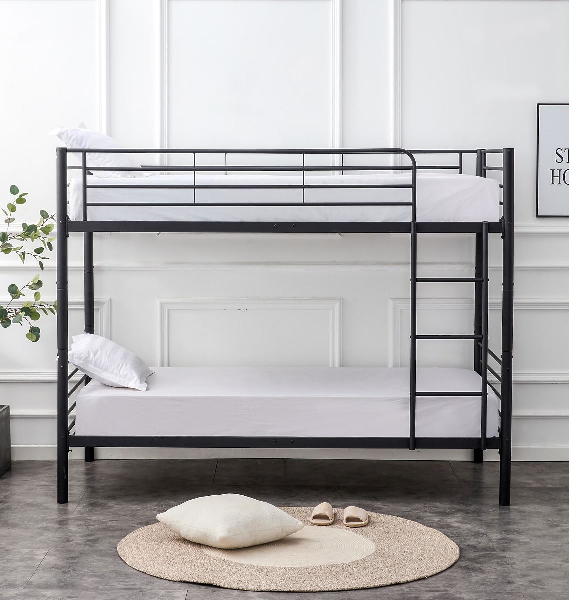 The modern black two-story metal bed BUNKY is an ideal choice for those who are looking for a practical and elegant solution not only for a child's room , but also for a student's room.