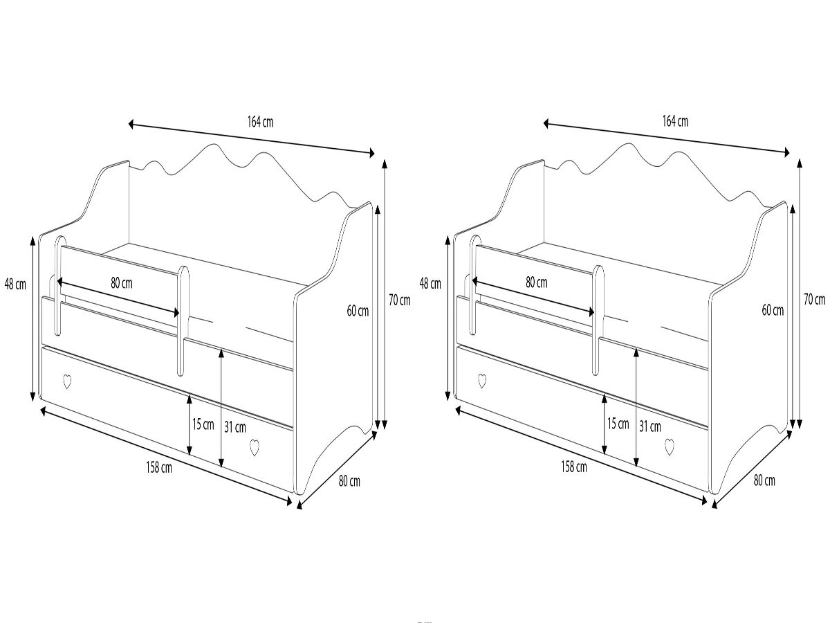 The children's bed Kobi EMMA 160x80 is the ideal combination of style, functionality, and safety. With its universal design and soft color, it fits perfectly into almost any child's room. Made from durable furniture board and a natural birch wood frame, it ensures strength and durability. Rounded edges further minimize the risk of injury, making it a safe choice for younger children. The EMMA bed is a practical solution that combines aesthetics with functionality, meeting the needs of both children and their parents.