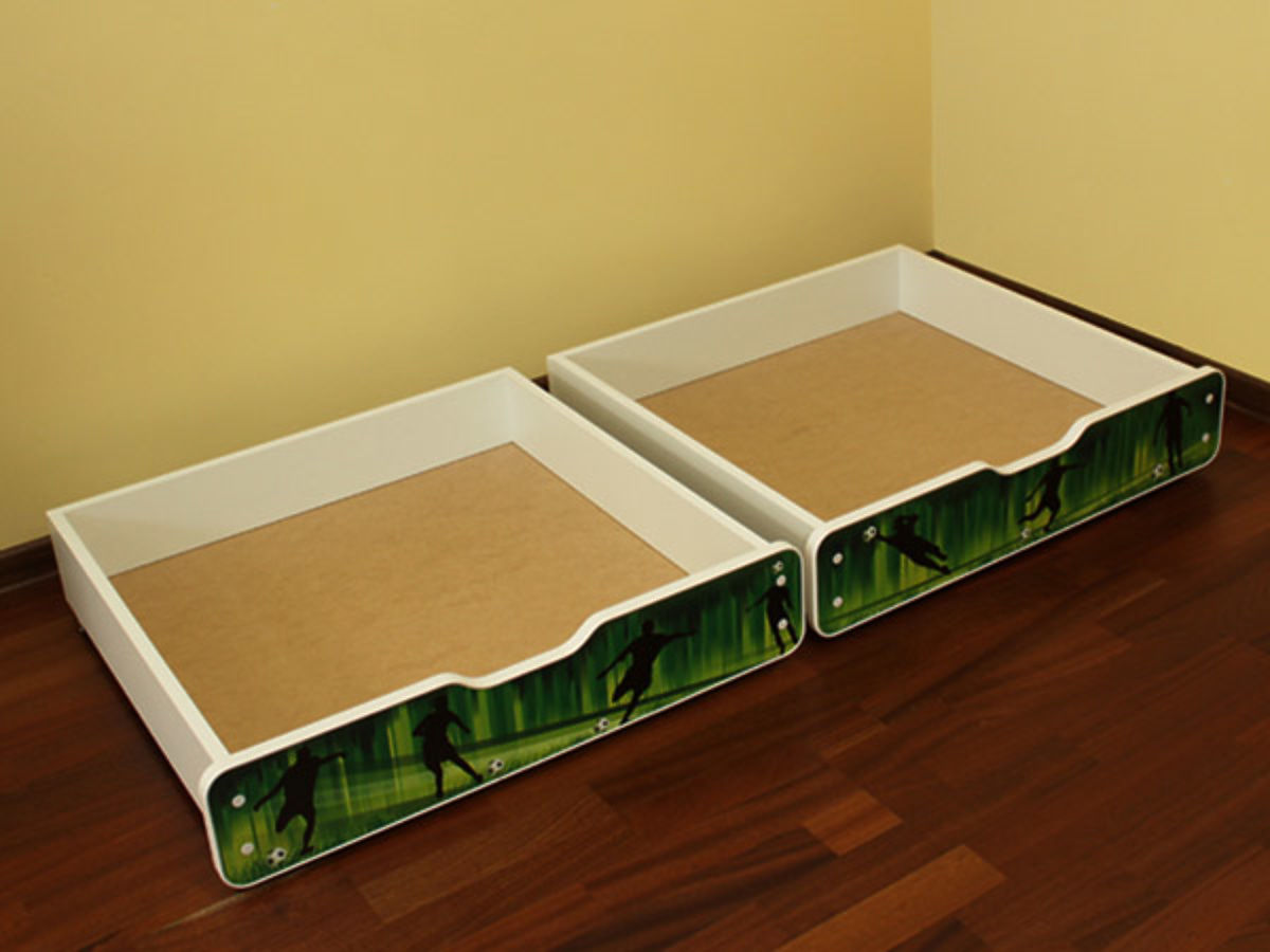 - the 180 x 80 cm and 200 x 90 cm size beds come with two smaller storage drawers on wheels