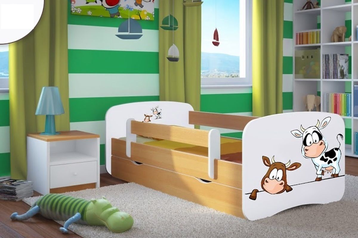 A children's bed with a beautiful cow design in a beech finish. .. more