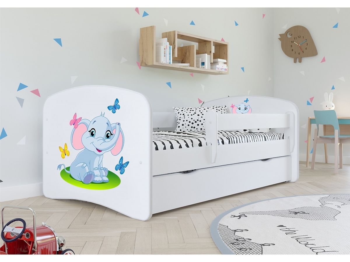 Banaby.ie » Children beds / Children beds with guardrail / Ourbaby Children's Bed with Safety Rail - Elephant - White