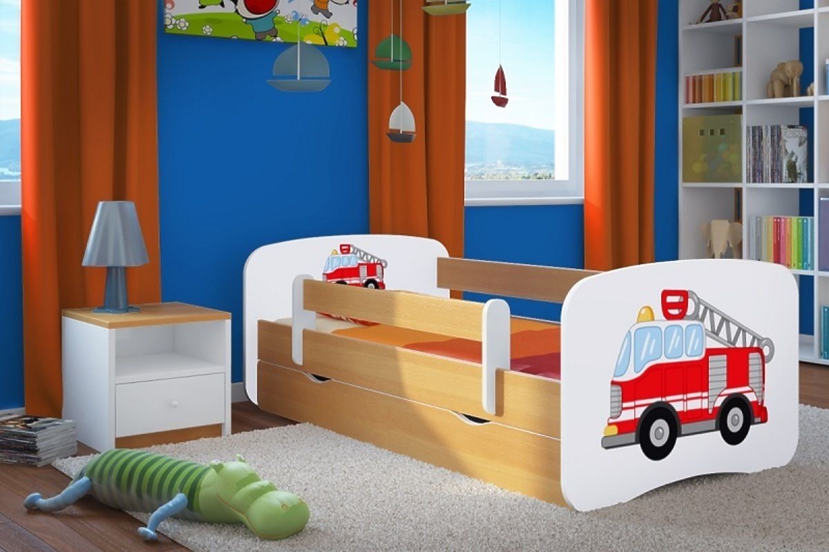 A beautiful beech sideboard finish, fire truck motif. You can have all that if you get this bed with a fire truck motif for your children's bedroom.