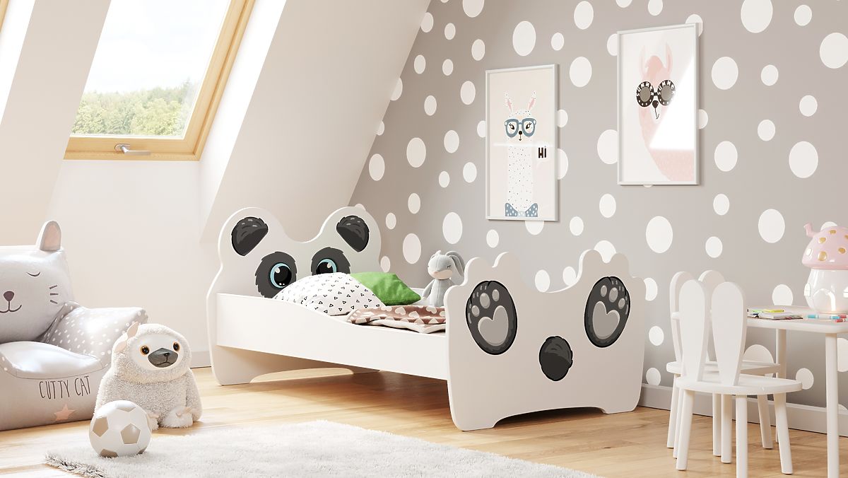 The children's bed with a cute panda print is the perfect solution for a little lover of fairy-tale themes. The adorable pattern on the headboard and footboard makes this furniture not only a place to sleep but also an exceptional decoration for a child's room. The soft colors and fairy-tale motif bring a joyful atmosphere to the interior, promoting both rest and creative play.