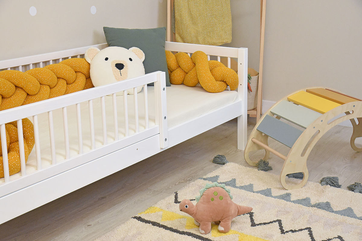 Stylish white children's bed with safe side rails and robust construction. .. more