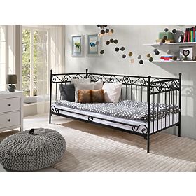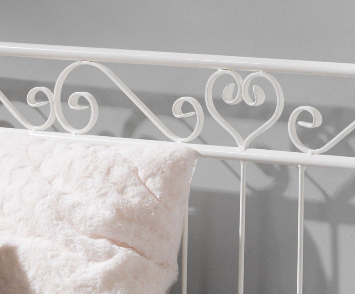 This beautiful handmade metal bed will bring elegance and style into your children's bedroom. You will fall in love with its stunning decorative details, such as the heart on the side of the bed or the S-shaped wrought iron parts. The original shape of the bed can also be used as a sofa. All four posts are rounded off at the top, which is safe and practical. As a sofa, it brilliantly complements a children's bedroom, terrace or a garden.