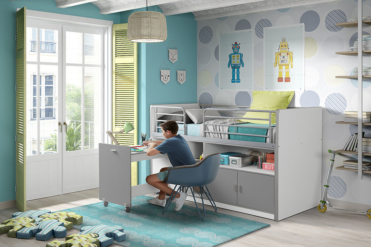 A multifunctional bed with a desk from a Belgian manufacturer that supplies furniture made of the finest materials and fully respects European Union standards for the safety of your children.