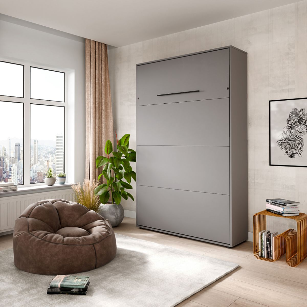 The VERTO 90x200 folding bed is an elegant, vertical bed hidden within a cabinet, allowing you to create a cozy sleeping area in a small space within moments. Perfect for those who want to combine comfort with maximum space utilization.