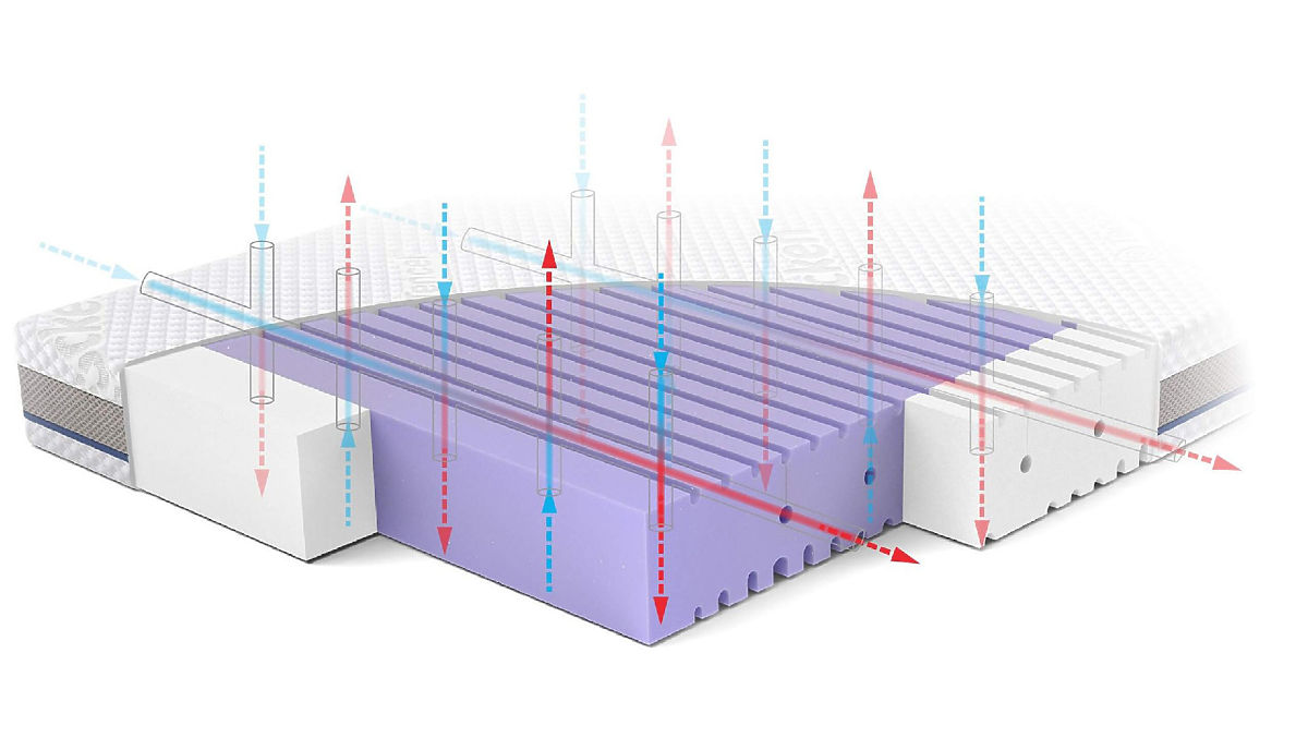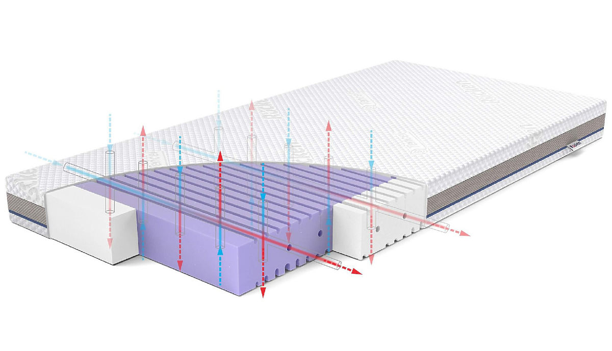 We have sewn a ventilation mesh around the entire perimeter of the mattress, which works with the mattress ventilation channels.