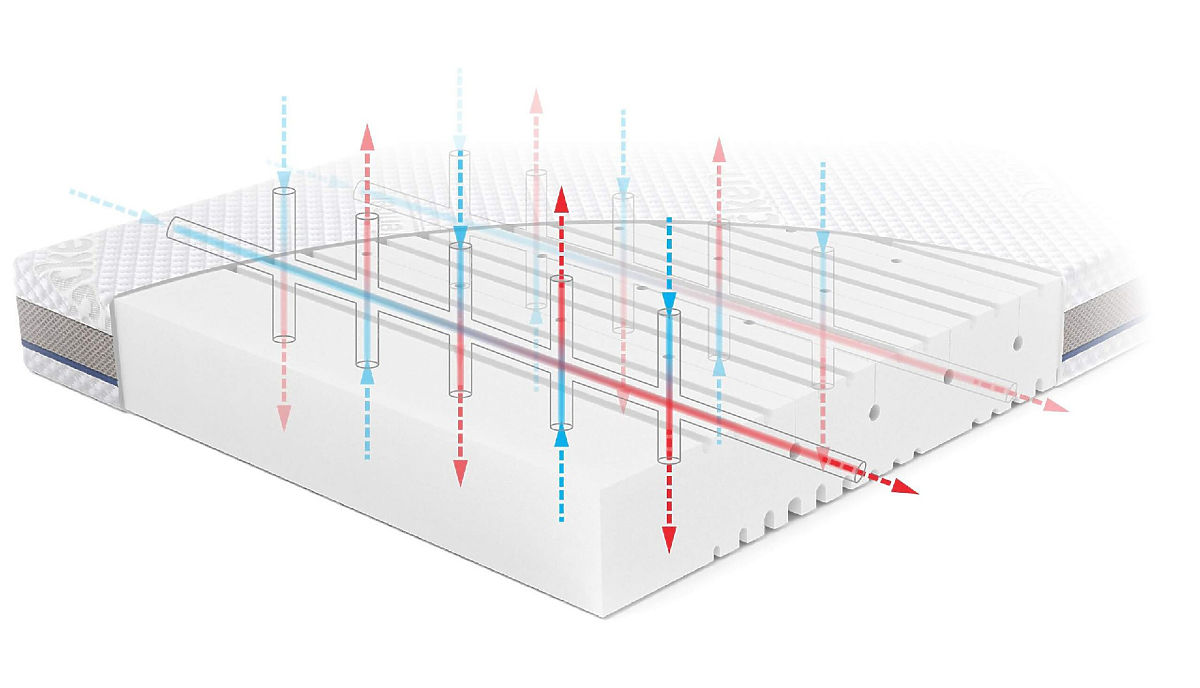 We have sewn a ventilation mesh around the entire perimeter of the mattress, which works with the mattress's air channels.
