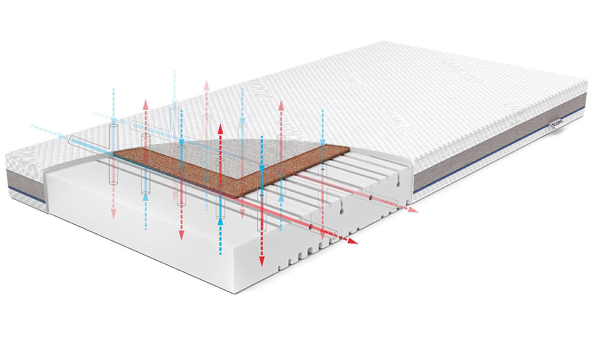 Natural CoconutThe layer of natural coconut fibers is one of the elements of the Natura mattress. These fibers are characterized by good ventilation properties and provide a hard sleeping surface. Ventilation channels located under the coconut mat enhance airflow.