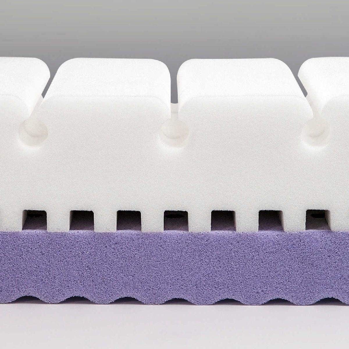 • Highest quality T30 foam (white color). This side has a repeating profile with significantly deeper ventilation channels. It provides a slightly firmer sleeping experience.