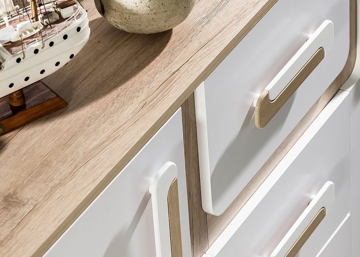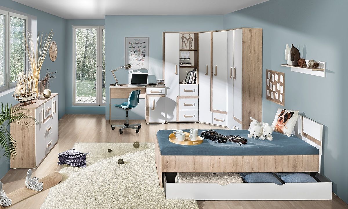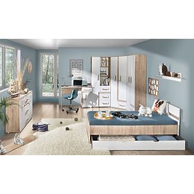 With this color combination, your room will look clean and modern. The color combination of white and oak creates a very pleasant interior. The furniture is made of high quality 16mm laminate.