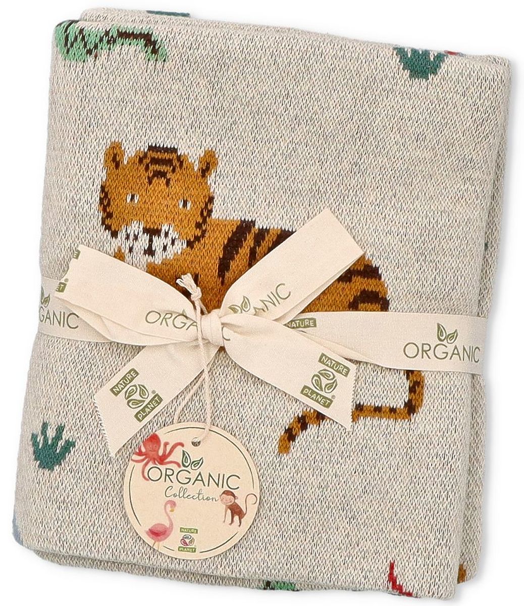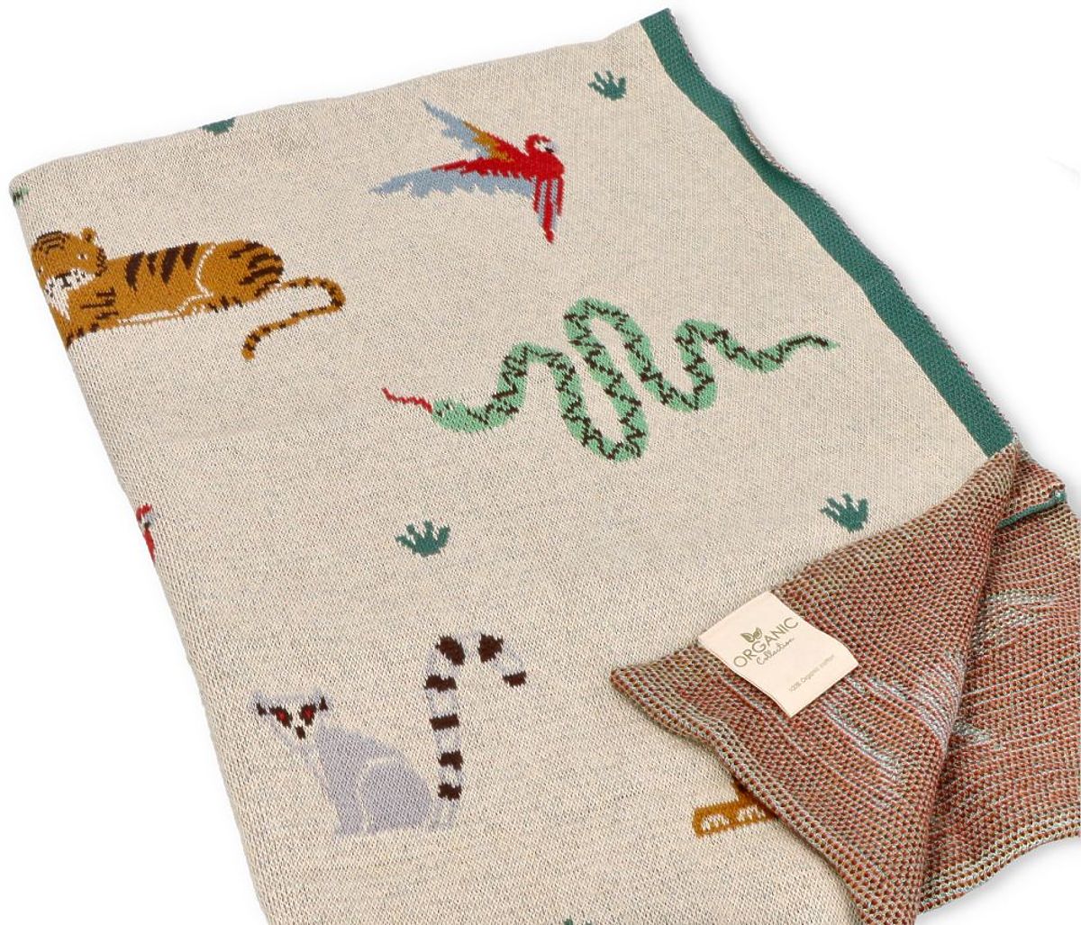The Wild Animals organic cotton blanket is an ideal choice for a child's room, combining nature and modern design. The blanket is made in a natural beige color with a wild animal motif. It features animals like a lion, snake, or parrot. It wonderfully transforms a child's corner and gives it a unique character. The blanket is perfect for a stroller, cradle, or crib. Ideal for a picnic or trip. The blanket is durable and pleasant to the touch, and can serve a child for many years.