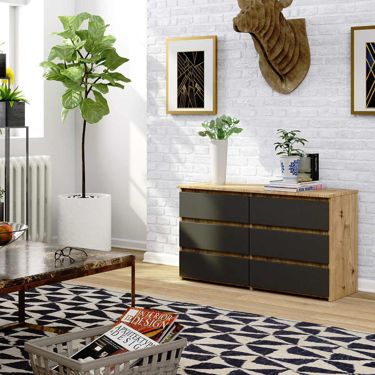 Durable 6-drawer chest in artisan oak and gray. .. more