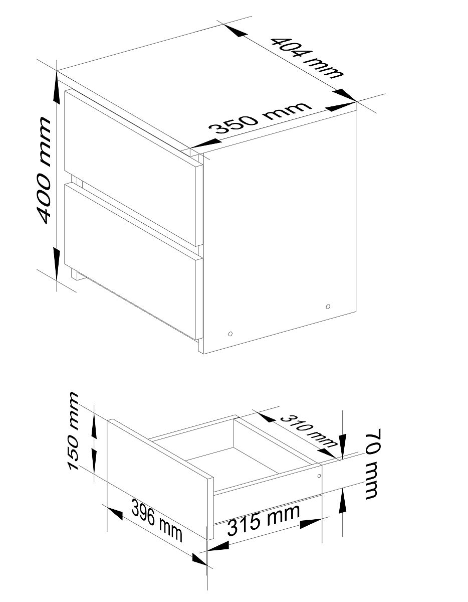 This compact and stylish chest of drawers is perfect as a bedside table or additional storage space. Two drawers can hold all items you want to keep out of sight, from documents to clothing, and the interesting color combination adds charm to any interior.