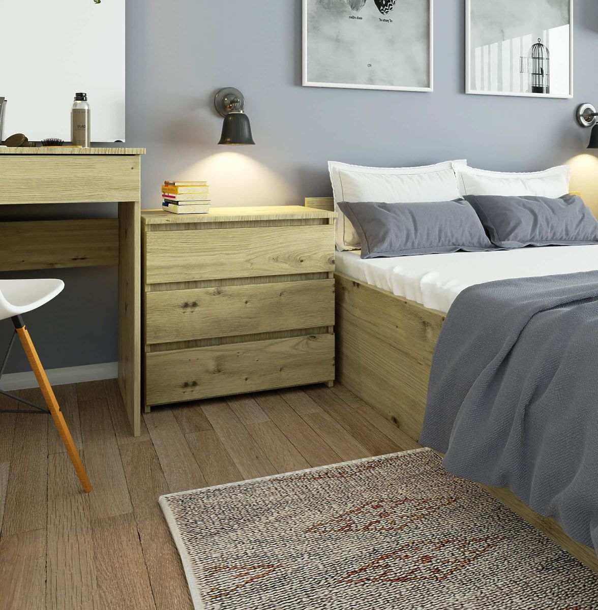Bedside tables in oak artisan color will look very good in Scandinavian, rustic, classic, and Provencal interiors. You can also incorporate them on the principle of contrast into eclectic or industrial styles. It is furniture with warm coloring and exceptional visual properties, which will brighten any space and give it a warm and friendly atmosphere.