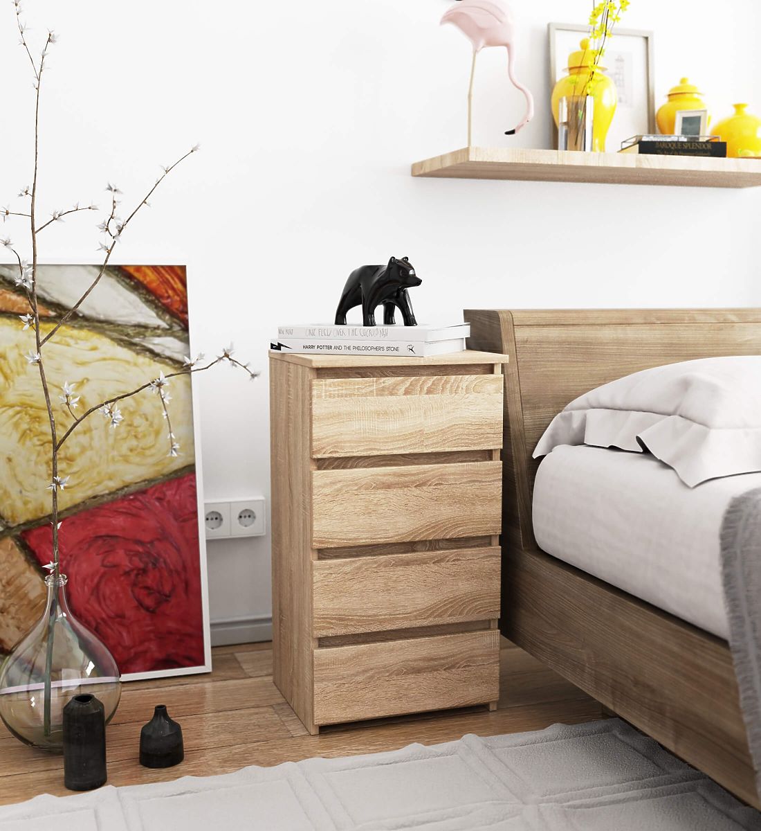 Chests of drawers are a popular type of furniture often placed next to the bed. A lamp is usually found on its top, while inside are items that facilitate rest and sleep. Those looking for an elegant chest of drawers should pay attention to the CL4 40 cm in oak sonoma color. It will beautifully stand out in any bedroom. You can also place it in a children's room.