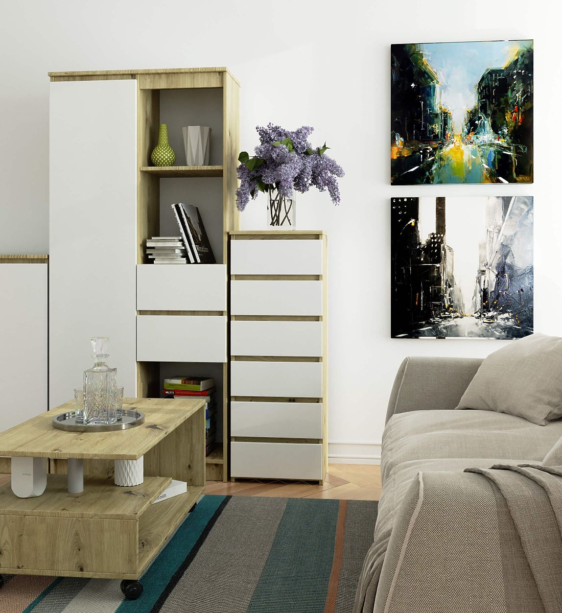 Chests of drawers are a popular type of furniture placed next to the bed. A lamp is most often found on its top, while inside are items that facilitate rest and sleep. Those looking for an elegant chest of drawers should pay attention to the CL6 40 cm chest in oak artisan color with white fronts. It will look beautiful in any bedroom. It can also be placed in a children's room.