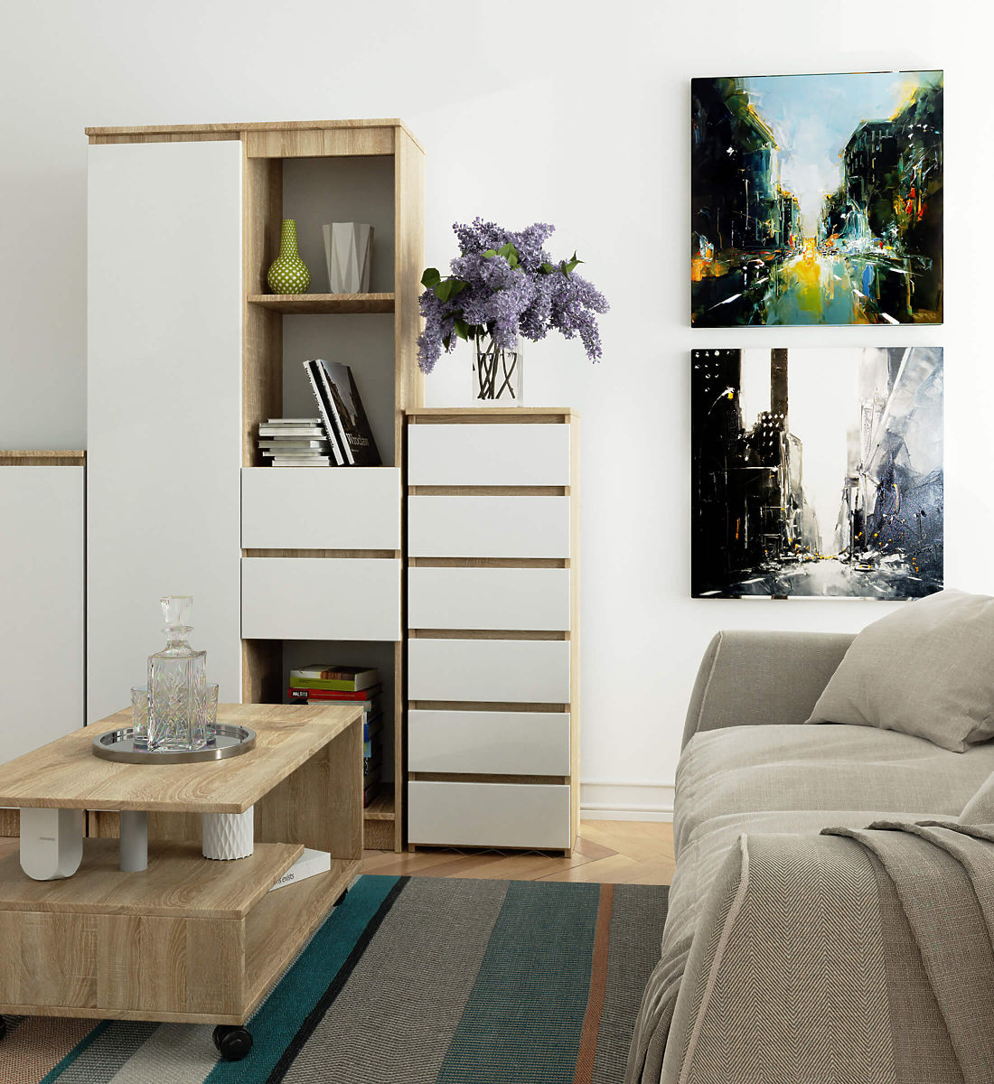 Chests of drawers are a popular type of furniture placed next to the bed. A lamp is most often found on its top, while inside are items that facilitate rest and sleep. People looking for an elegant chest of drawers should pay attention to the CL6 40 cm chest in oak sonoma color with white fronts. It will beautifully stand out in any bedroom. It can also be placed in a children's room.
