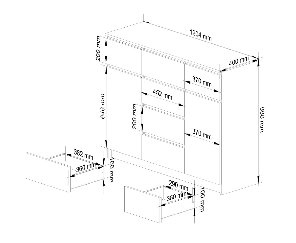 - Chest of drawers made from high-quality 16 mm abrasion-resistant laminated board