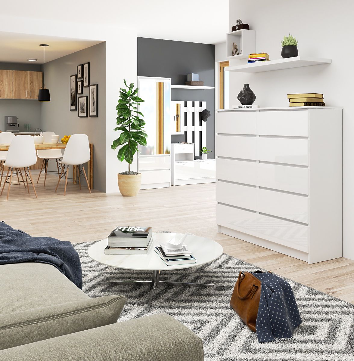10-drawer white gloss chest, 120x121x40 cm, self-assembly required. .. more