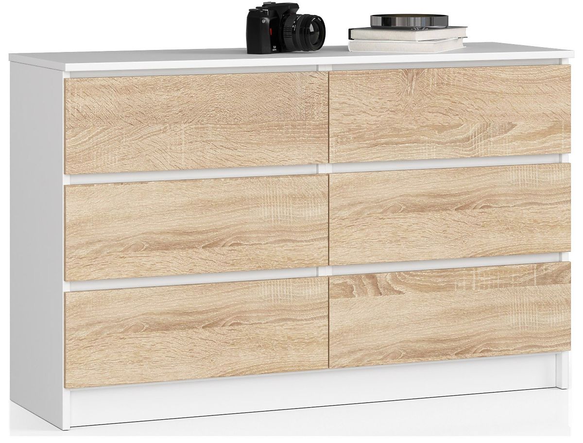 Chest of drawers with 6 drawers in White/Sonoma Oak finish. .. more