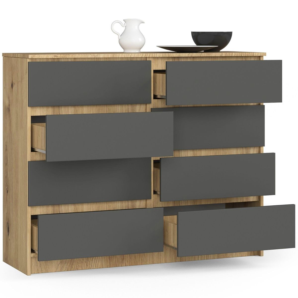 Chest of drawers with 8 drawers in Artisan Oak and Gray. .. more