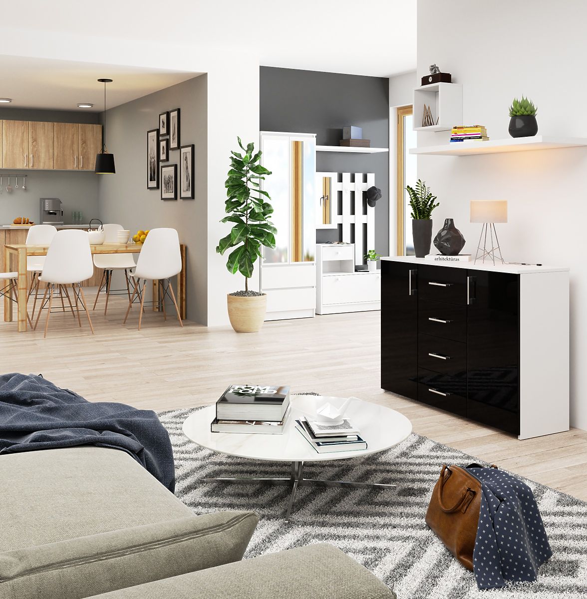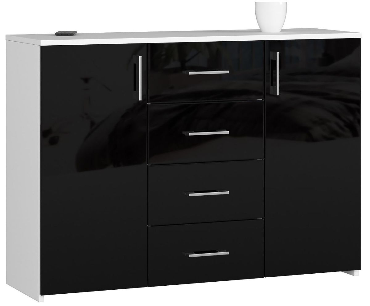 Black gloss chest of drawers with 4 drawers and 2 doors. .. more