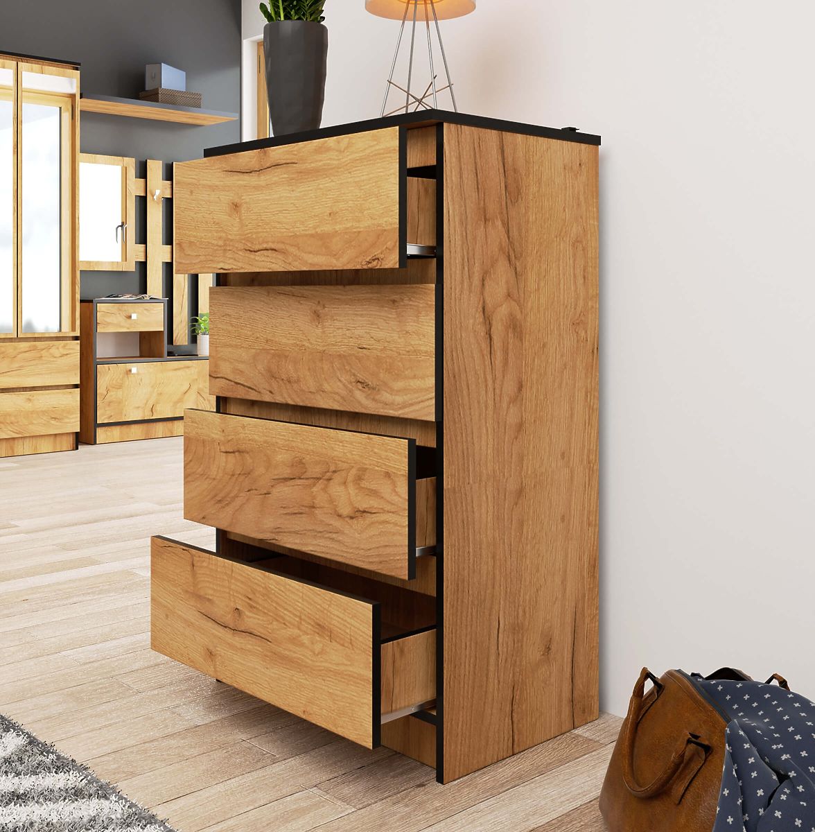 Craft Oak chest of drawers with four drawers and ABS edge protection. .. more