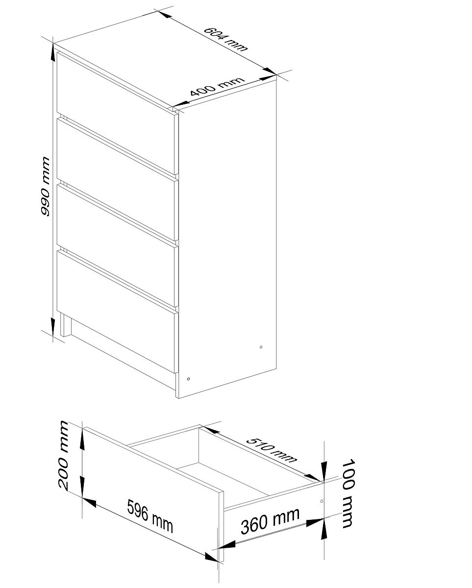 CHEST OF DRAWERS K60 4 DRAWERS Made from 16mm abrasion-resistant laminated board.