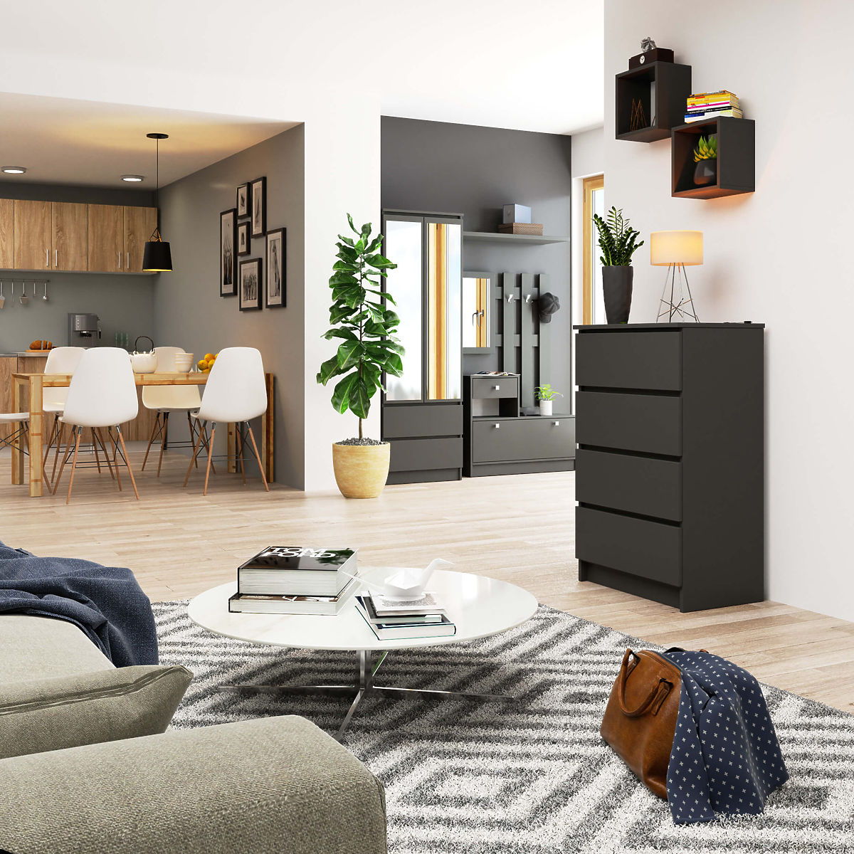 Graphite gray chest of drawers with 4 drawers and ABS edge protection. .. more