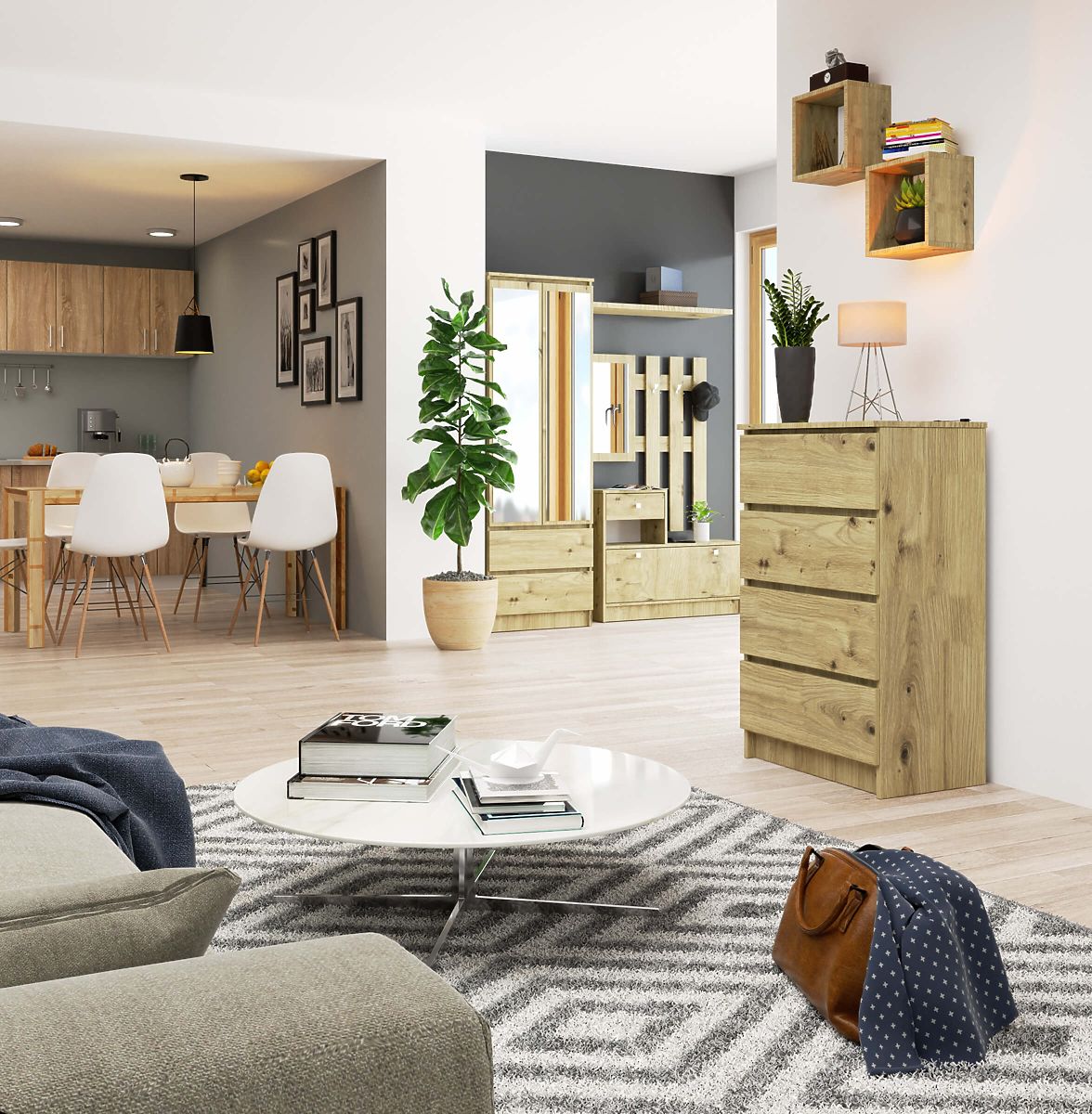 Oak Artisan chest with 4 drawers and ABS edges. .. more
