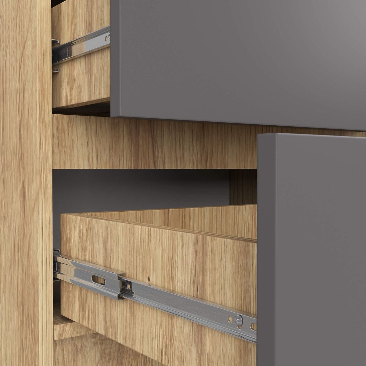 - Drawers move on metal ball-bearing slides - Edges finished with ABS edging ensuring high protection against damage