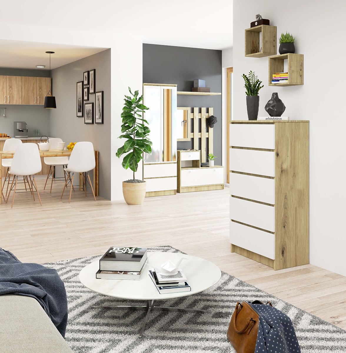 Banaby.ie » Children's furniture / Children's chests of drawers and wardrobes / Children's chests of drawers / CHEST OF DRAWERS K60 5SZ CLP PK OAK ARTISAN / WHITE