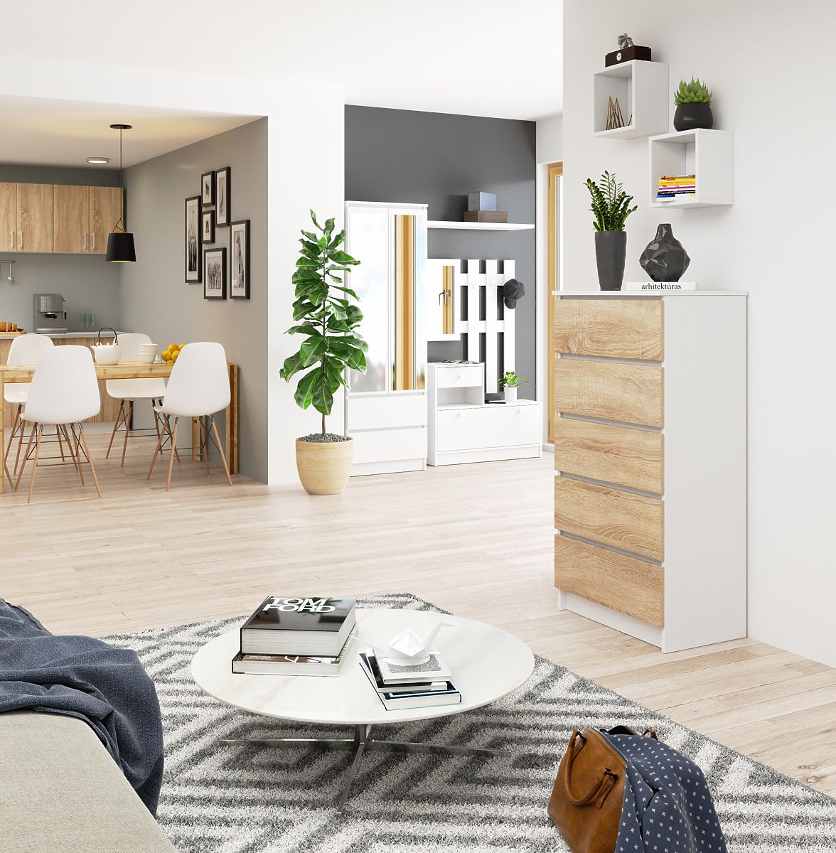 Chest of drawers with 5 drawers in white and Sonoma oak finish. .. more