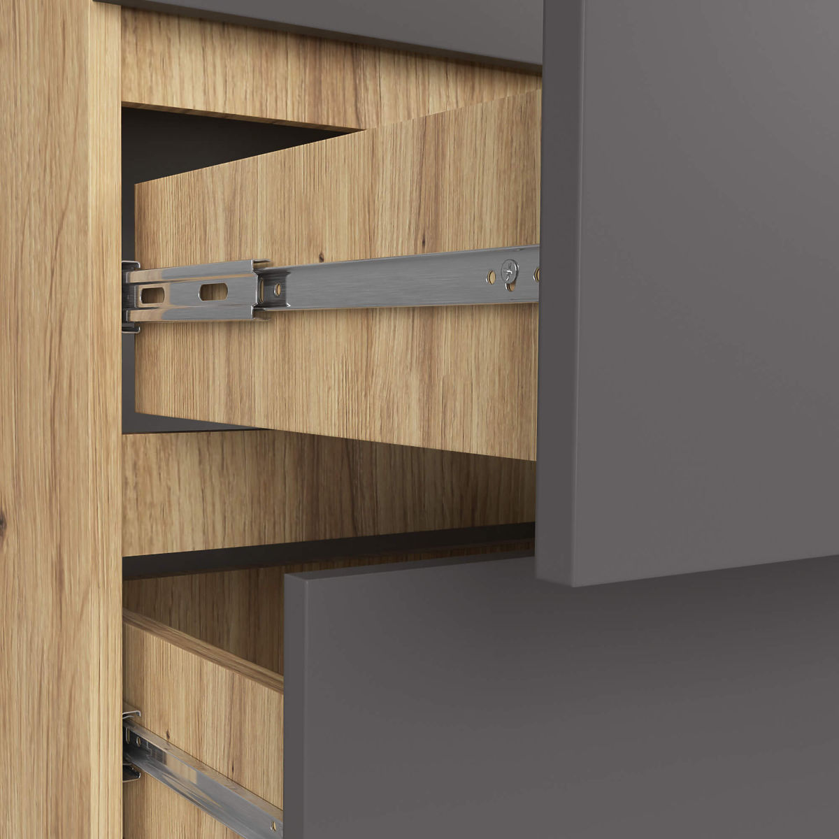 Edges finished with ABS edging MIX OF COLORS!!! BODY ARTISAN OAK / FRONTS GRAPHITE GRAY